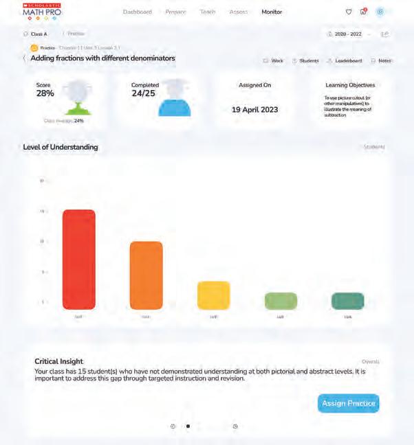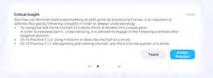 Accessible on teacher dashboard and at every point of use, learning insights and reports help educators monitor trends and quickly find and address learning gaps and gains