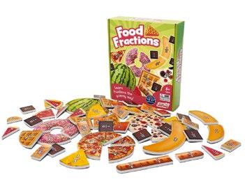 Contains pieces resembling popular foods that are each divided to represent common fractions. Children can play with the pieces as puzzles, connect them together to make a whole, or simulate breaking food into equal parts.