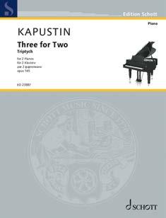 Three for Two. Triptych for 2 pianos op. 145 was written by Kapustin in 2012 for the Japanese piano duo PiaNA, consisting of Natsuki Nishimoto and Asuka Matsumoto.