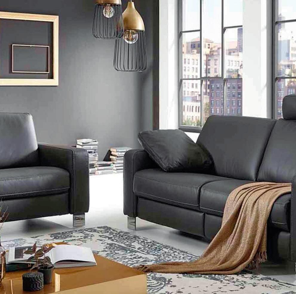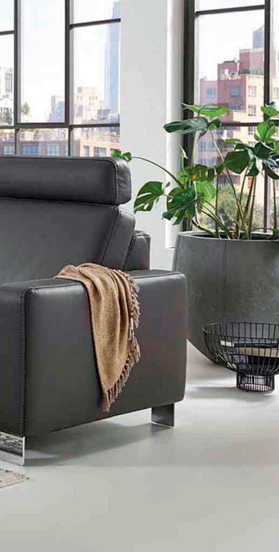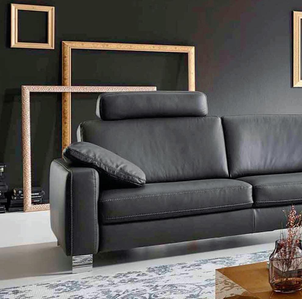 1 Sofa «Shetland» 3-Sitzer, Lederbezug (Torro) anthrazit, Metallfüsse Chrom, Sitzqualität weich, Sitzhöhe: 46 cm, Kopfstütze, Relaxfunktion & Dekokissen optional erhältlich. B: 214 cm. 19893.7.
