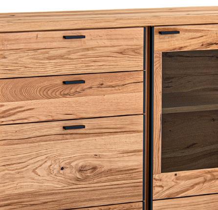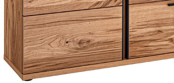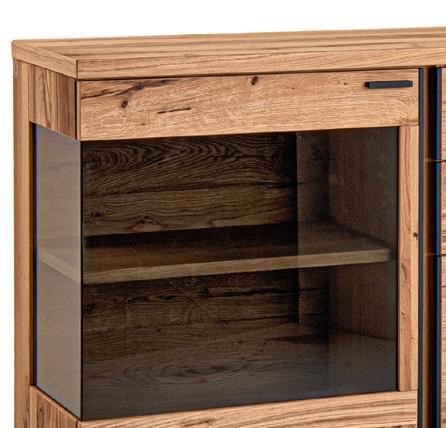 7 Sideboard «X4» Eiche rustico hell, geölt, Element links & rechts mit Türen mit Vitrinenausschnitt, je 1 Tablar, fest, Mittelteil mit 4 Schubladen mit Vollauszug, B ×T× H: 188 × 43 × 111 cm. 25536.0.5