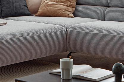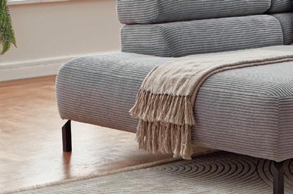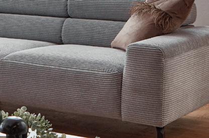 8 Ecksofa «Spirit» Stoffbezug Cord grey, Kopfteil verstellbar, Metallfuss schwarz matt, Sitzhöhe: 43 cm, motorischer Sitzvorzug rechts, B ×T: 312 × 219 cm, exkl. Dekokissen. 31619.0.