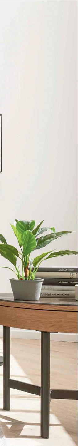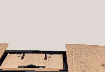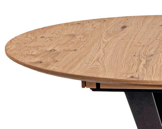 1 Esstisch «Arabella» Wildeiche hell, soft gebürstet, geölt, Holzfurnier, Bodenplatte & Unterbau aus Metall, anthrazit matt, inkl. 1 Einlage (50 cm), ø 140 / 190 cm, H: 75 cm. 25762.0.