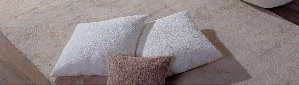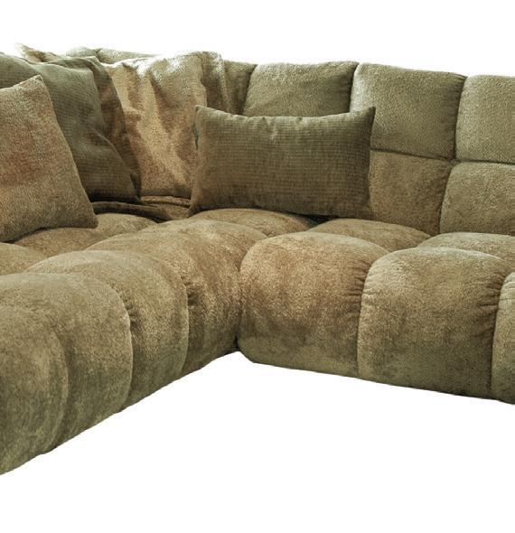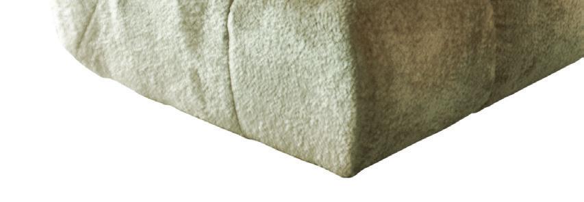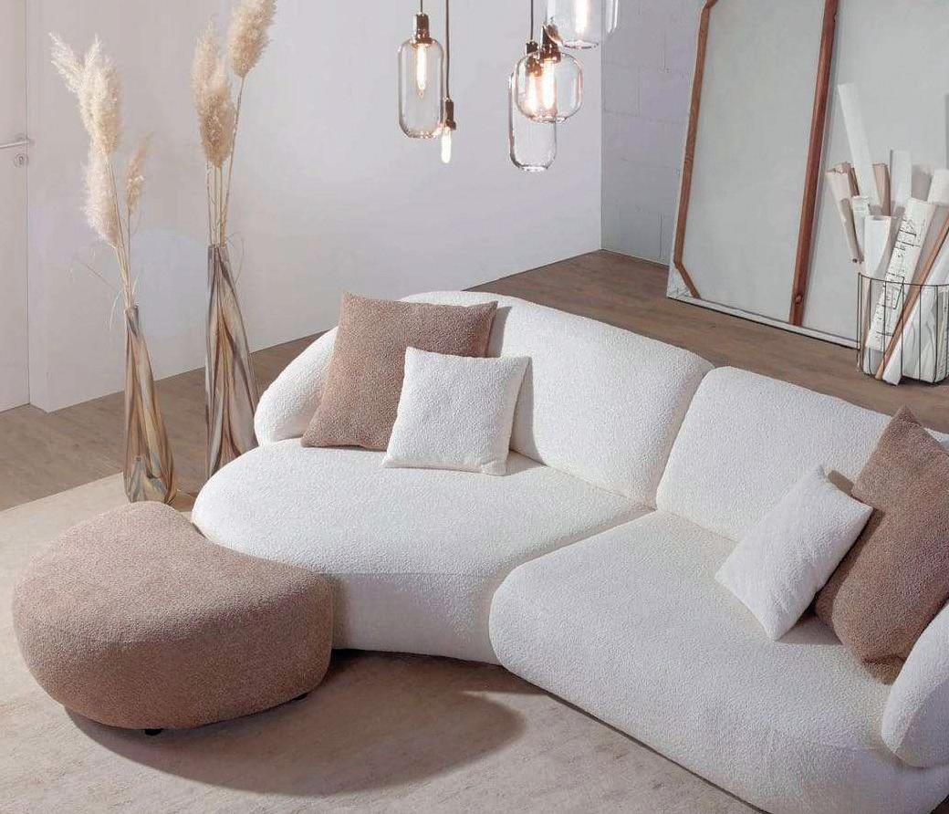6 Big Sofa «Nora» Stoffbezug weiss,inkl. 4 Kissen (2 Rückenkissen & 2 kleine Kissen), XL-Rundung, Sitzhöhe: 42 cm, B ×T: 300 × 140 cm. 31560.0. Hocker «Nora» Stoffbezug braun, Kunststofffüsse schwarz, B ×T× H: 90 ×70 × 42 cm. 31560.1.