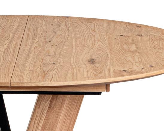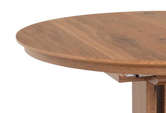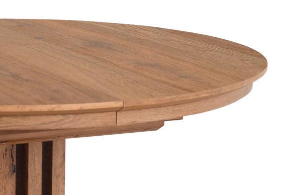 4 Esstisch «Bert» Tischplatte rustikale Asteiche, Hartwachsöl, natur, Risse, Äste, Spalten & Löcher werden mit transparentem Füllmaterial auf Epoxidbasis ausgefüllt & versiegelt, inkl. 1 Einlage (50 cm), ø 120, Breite bei ausgezogener Tischplatte: 170 cm, H: 75 cm. 3903..