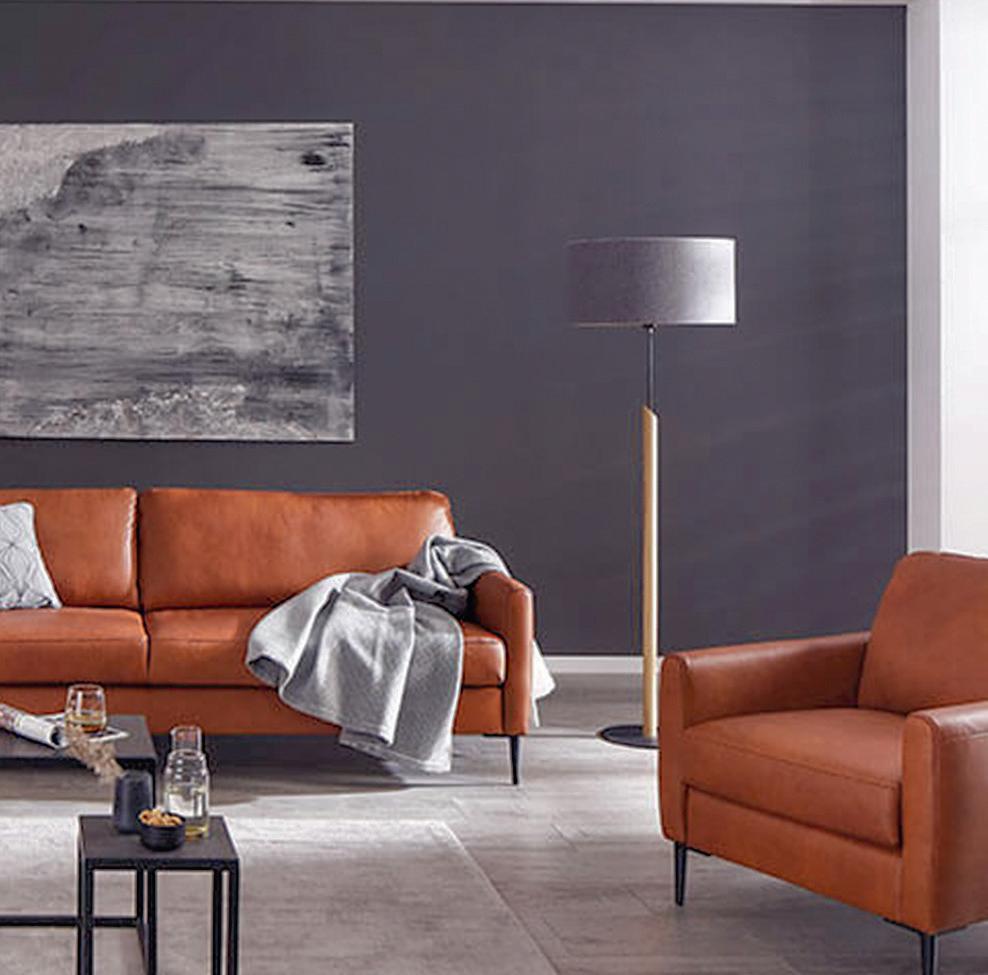 5 Sofa «Antonio» (3-Sitzer) Lederbezug cognag, Metallfuss schwarz, Sitzhöhe: 45 cm, B: 216 cm. 21798.29. Z73