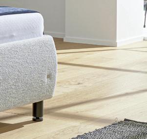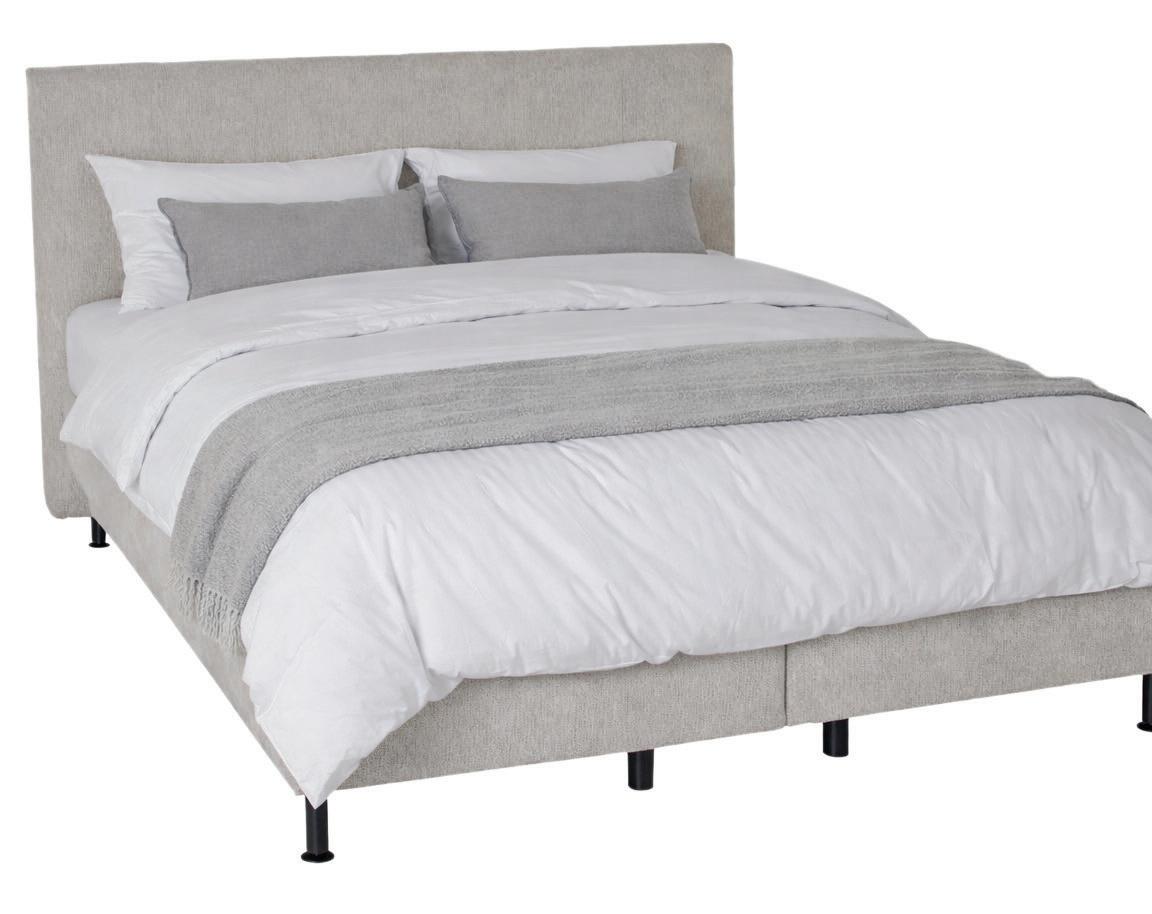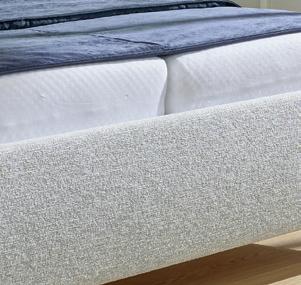 7 Polsterbett «Maddy» Stoffbezug Nordic elefenbein, Kopfteil glatt, Holzfüsse massiv, eichefarbig, Liegefläche: 180 × 200 cm, exkl. Bettinhalt. 16025.2.