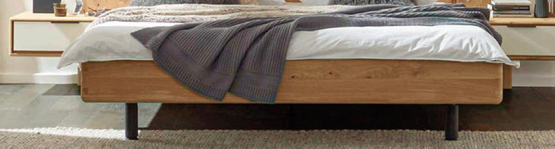 2 Bett «Langnau» Bett in Wildeiche massiv, Polsterkopfteil Stoff Kano Siena, Nachttische mit Bettmontage, Liegefläche: 180 × 200 cm, exkl. Bettinhalt. 22882.1.8