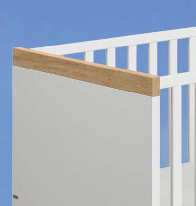 3 Babybett «Kayla» MDF, Kreideweiss, Eiche-Dekor Nebraska, 2 Schlupfsprossen, Höhe in 4 Stufen verstellbar, KaltschaumMatratze: Airwell 400, Liegefläche: 70 × 140 cm. 29027.0.3 6