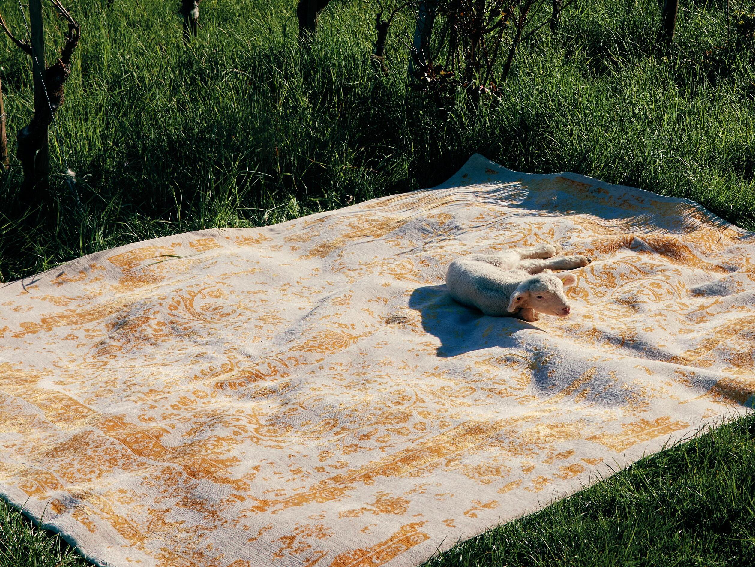 1 Teppich «Lilian Gold» Grösse ca. 150x200 cm, handgeknüpft, Wolle mit Seide, ca. 150.000 Knoten / m², Herkunft: Indien