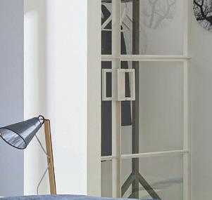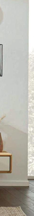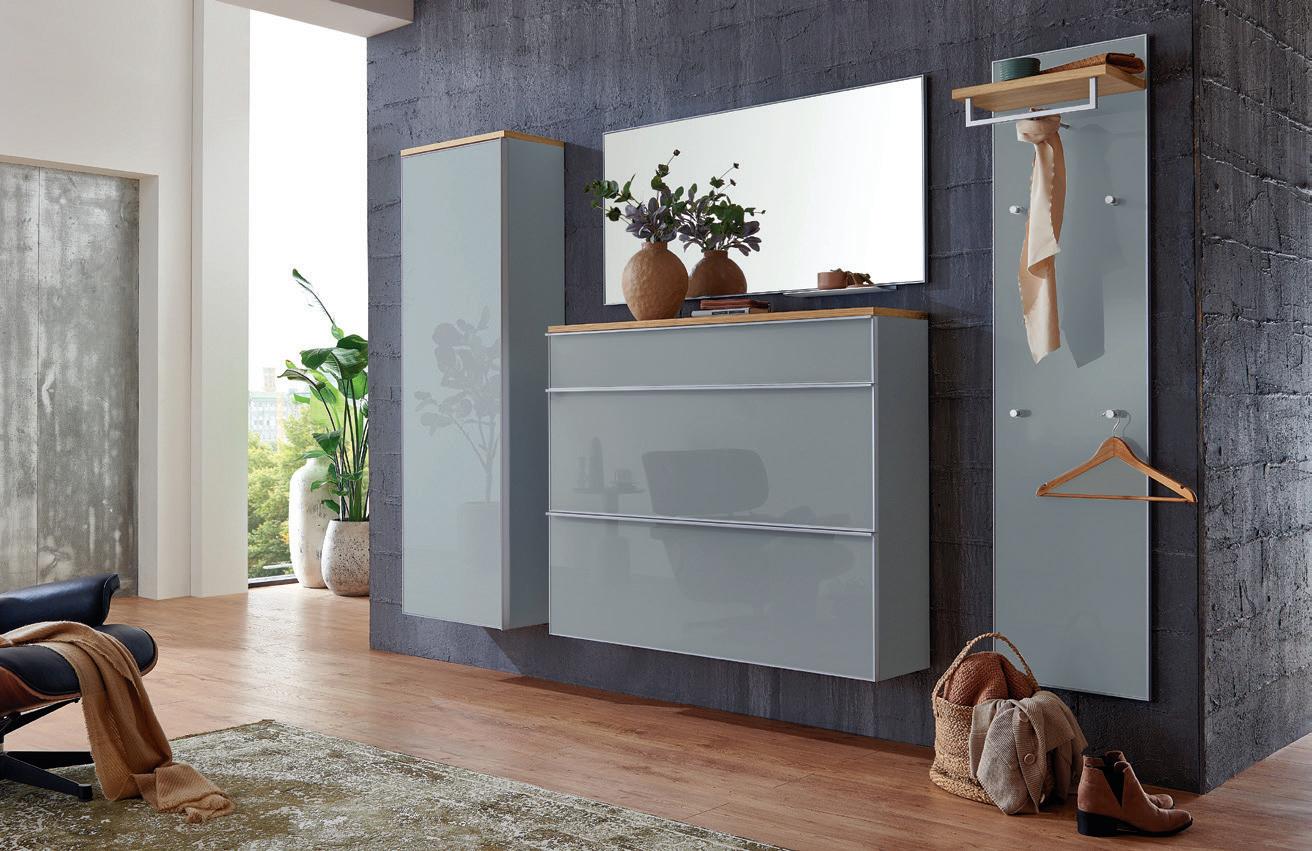6 Garderobe «Veronica» Lack perlgrau & Balkeneiche, Glas Optiperlgrau, bestehend aus: Hängeschrank, Hängekommode, Spiegel, Garderobenpaneel, B ×T× H: ca. 120 × 31 × 200 cm. 31571.0.6
