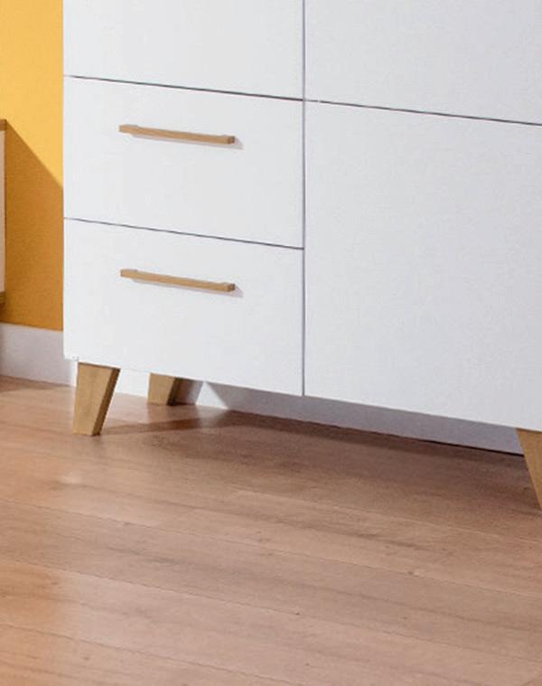 2 Kommode «Kayla» Kreideweiss, Eiche-Dekor Nebraska, 3 Schubkästen, Wickelaufsatz mit aufsteckbarem Kopfschutz, B ×T× H: 95 ×56 × 90 cm. 29027.0.9