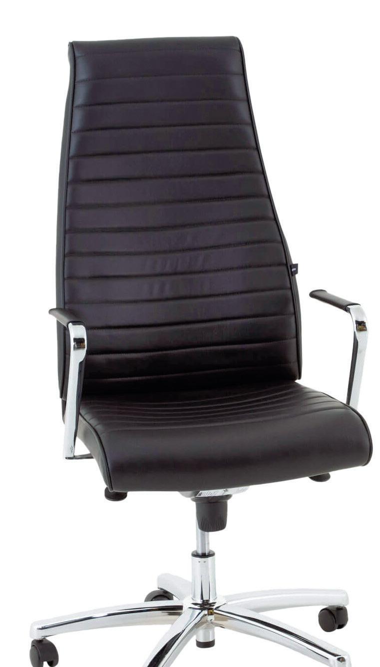 8 Chefsessel «Perry» Lederbezug schwarz, Stahl-Kreuzfuss verchromt, Sitzhöhe: 43 – 53 cm, Sitzbreite: 50 cm. 16873.0.