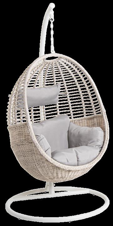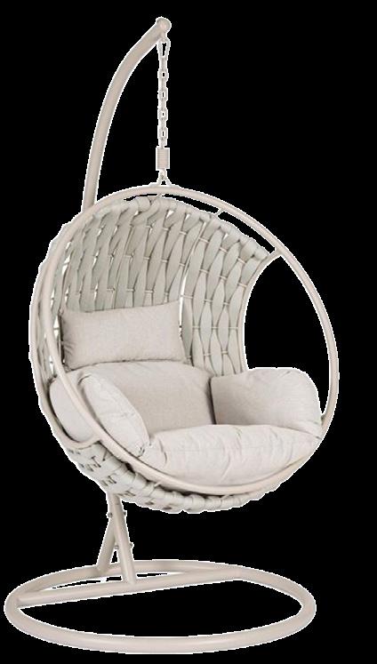 2 Hängeschaukel «Gabi» Seilgeflecht beige, inkl. Kissen, Metallgestell pulverbeschichtet, beige, max. Belastung 130 kg, ø 105 cm, H: 196 cm. 34014.1.
