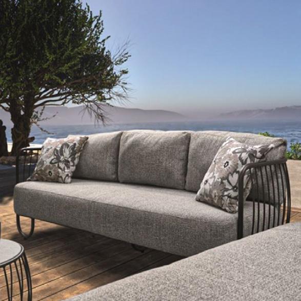 6 Gartensofa «Iwan» Stoffbezug gemustert, inkl. Funktionskissen, B ×T× H: 243 × 111 × 88 cm. 31498.0.6 Beistelltisch «Scoop» Tischplatte feinstrukturiert, schwarz matt, pulverbeschichtet, Rundrohrgestell aus Metall, schwarz matt, B ×T× H: 35 × 60 × 55 cm. 31499.0.