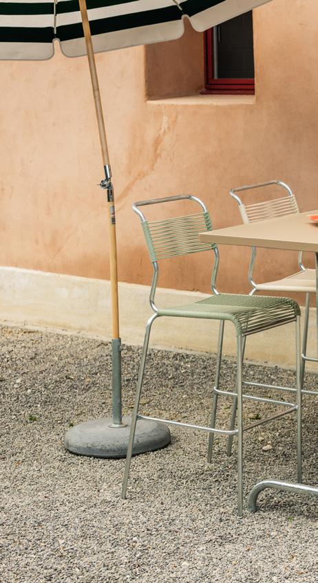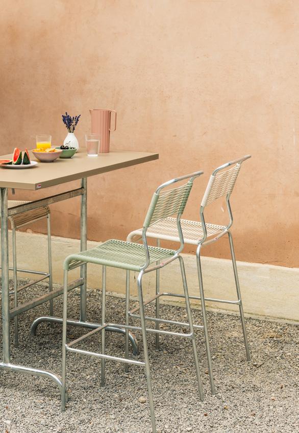 2 Metall-Stehtisch «Säntis» Verzinktes Stahlblech mit Polyesterpulverbeschichtung, Gestell galavanisch, verzinkt & beschichtet, demontierbar, wetterfest, 2teilig, B ×T× H: 130 × 70 × 110 cm. 33333.87. Spaghetti-Barstuhl «Säntis» Sitzfläche: Spaghettibezug, Stahlrohrgestell feuerverzinkt, wetterfest, Sitzhöhe: 77 cm, B ×T× H: 40 × 60 × 114 cm. 33334.64.