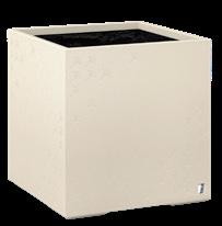 4 Pflanzengefäss «Cubic» Pflanzwürfel & säulen aus frostfestem & glasfaserverstärktem Beton, wahlweise im Farbton cream oder earth, mit eingelassenem faded CornflowerDekor & JOOP!MetallLabel. 33570.x.