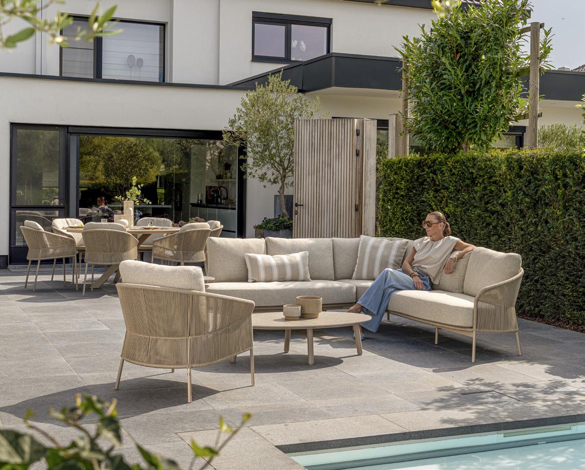 1 Gartensofa «Florenz» OlefinBezug, wetterfest, Aluminiumgestell terre, bestehend aus: zwei 2Sitzer & Eckelement. 34808.x. Gartensessel «Florenz» OlefinBezug, wetterfest, Aluminiumgestell terre, inkl. 1 Kissen. 34808.1. Clubtisch «Samos» Keramiktischplatte elips, Aluminiumgestell terre, B ×T× H: 120 × 65 × 30 cm. 34808.4.