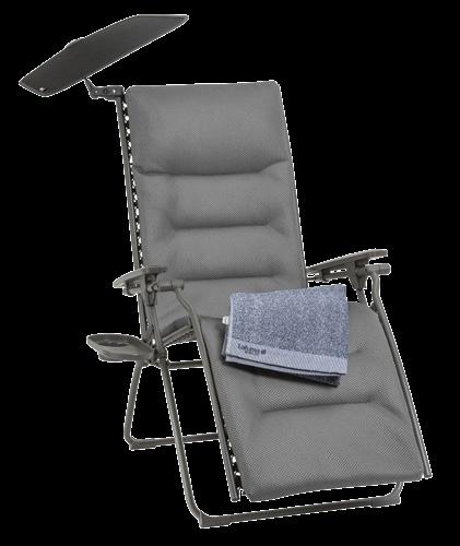 1 Gartenliege Set «All in one» Bezug: BeComfort grau, abnehmbar, Stahlrohrgestell titane, lackiert, stufenlos verstellbar, inkl. Feststellbremse, Kopfpolster verstell & abnehmbar, Getränkehalter, Frotteauflage & Sonnenschutz. 33112.0.