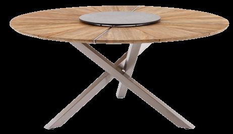 7 Gartentisch «Oryx» Tischplatte recyceltes Teak, 2,5 cm, Schweizerkante, ø 160 cm, Edelstahlgestell, Edelstahlapplikationen gebürstet, Drehplatte HPL scratched grey, ø 60 cm. 21153.0.3