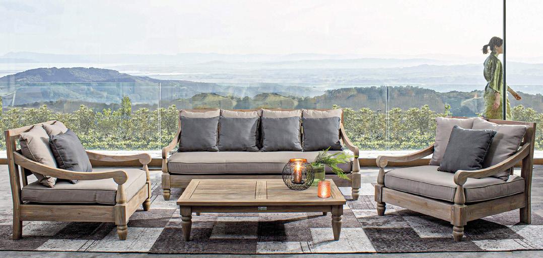 5 Gartensessel «Bari» Stoffbezug braun, abnehmbar, Teakholzgestell, B ×T× H: 90 × 90 × 81 cm. 26725.0.2 Gartensofa «Bari» Stoffbezug braun, abnehmbar, Teakholzgestell, B ×T× H: 190 ×112 × 81 cm. 26725.0.1 Clubtisch «Bari» Teakholz, B ×T× H: 120 × 80 × 30 cm. 26725.0.3