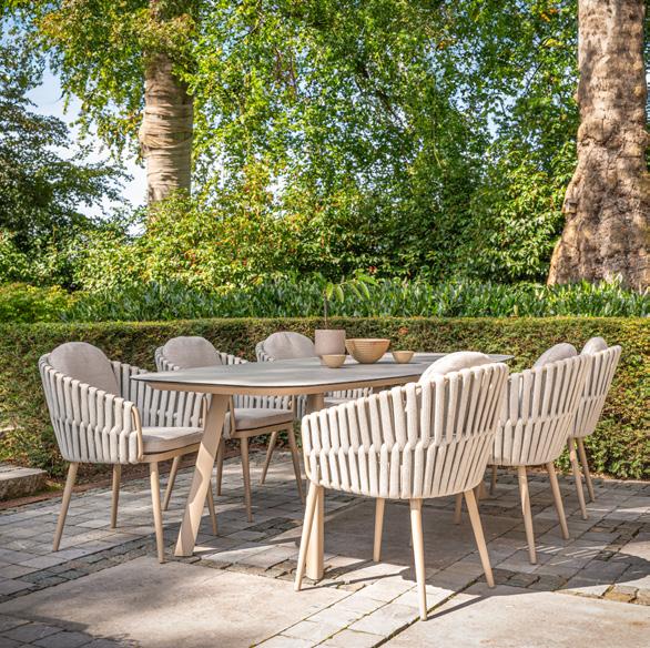 3 Gartenstuhl «Espinosa» Farbe latte, B ×T× H: 59 × 59 × 80 cm. 31449.0. Gartentisch «Marcolo» Keramikplatte auf Glas, Gestell latte, B ×T: 240 × 103 cm. 31450.0.