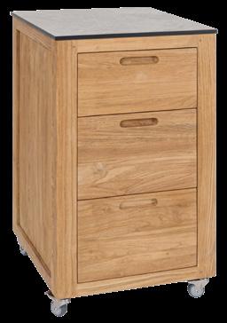 9 Outdoor-Sideboard «Elvira» Old Teak mit 3 Schubladen & 4 Lenkrollen, davon 2 mit Bremse, Arbeitsplatte Silverstar Quartz, B ×T× H: 50 × 58 × 88 cm. 535000.1.