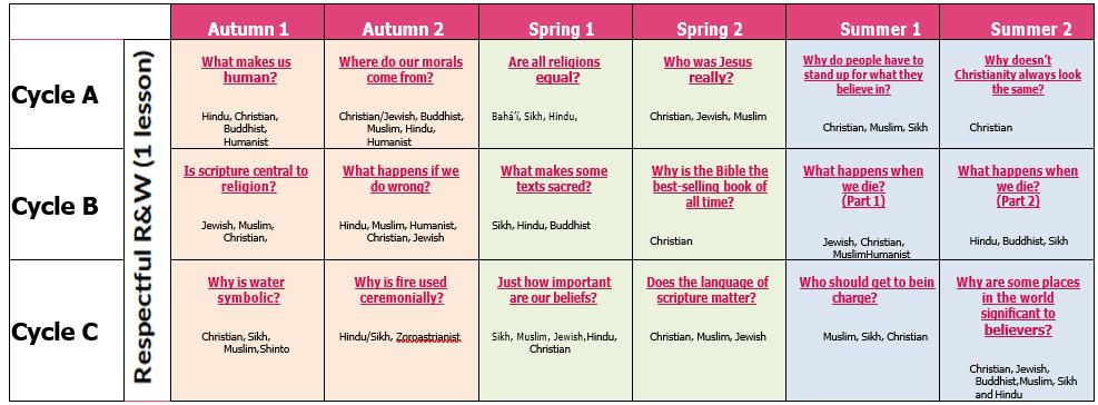 Our curriculum provides opportunities for RE outside a dedicated lesson.
