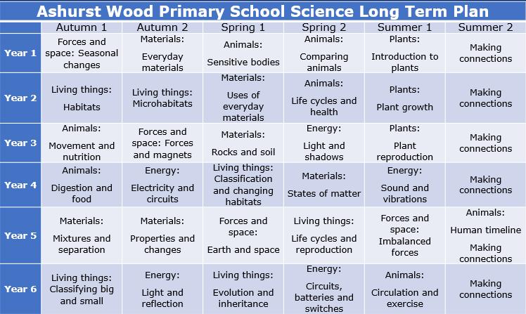 At Ashurst Wood we aspire to promote children’s independence and for all children to take responsibility in their own learning. At the end of each unit of work, the children are given a set of assessment cards, which as a group, they must demonstrate their learning. These tasks enable the children to articulate scientific concepts clearly and precisely, assisting them in making their thinking clear, both to themselves and others.