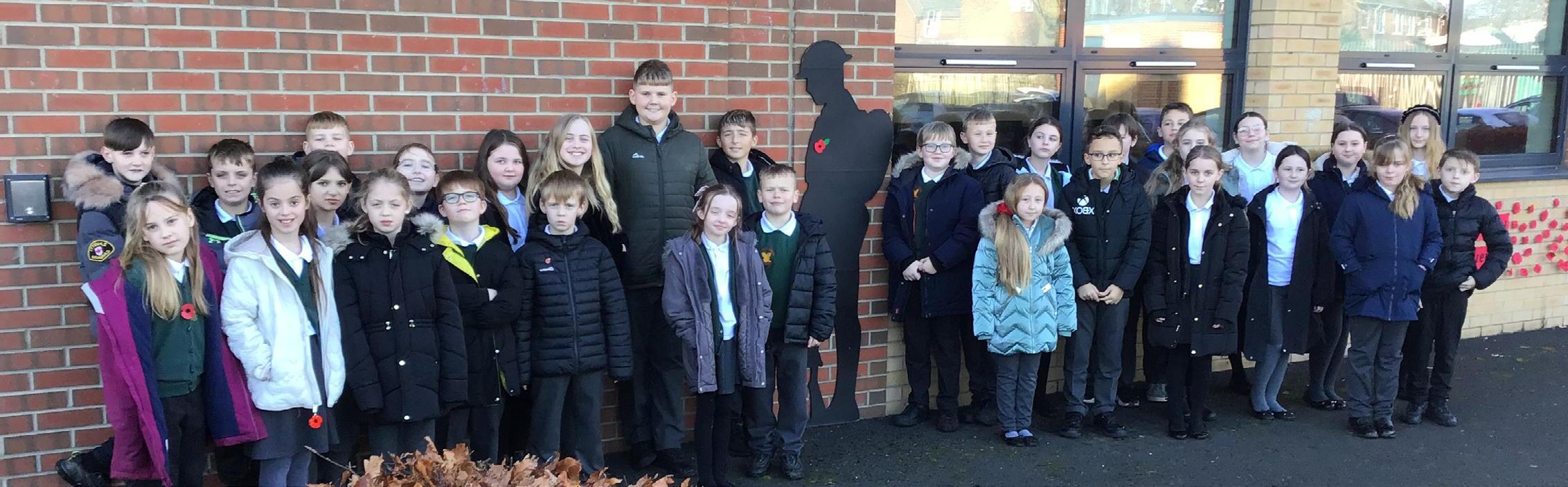 Children from St. William’s participated in a Remembrance Day service at Trimdon Grange war memorial to remember all those from Trimdon who sacrificed their life in conflicts throughout the twentieth century. The children involved in the service all had family connections to those who lost their lives. Children presented poppy plaques with the names of the deceased on them and spoke to local residents who shared their own personal stories about family members lost to conflict.