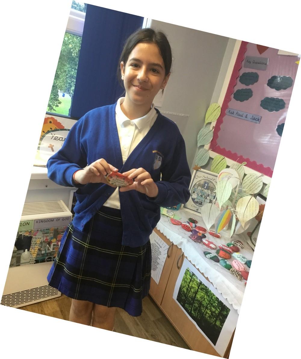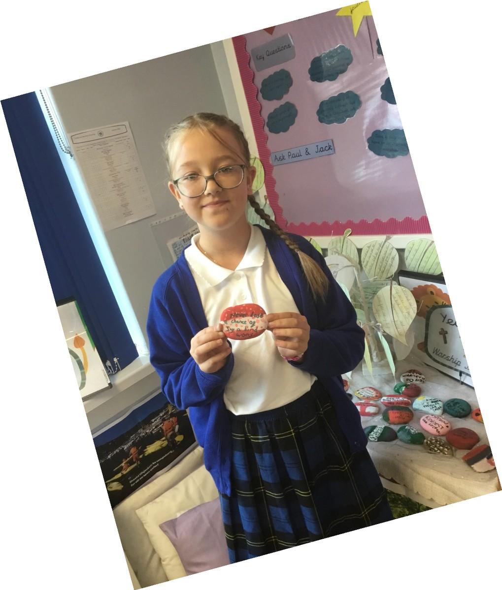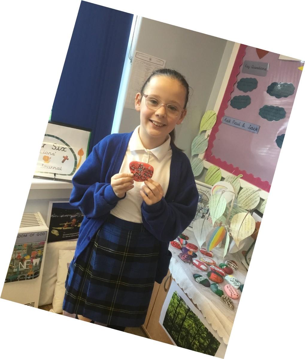 The children designed and painted their own kindness rocks, thinking carefully about the words that they wanted to include.