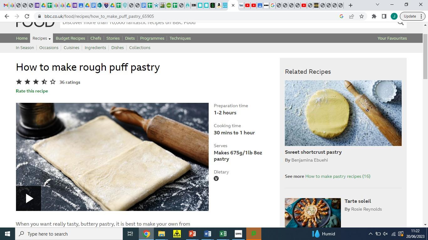 Roll out the puff pastry until it is big enough to cover 2 aluminium trays and cut to size. Weigh out the beef into a mixing bowl for later.