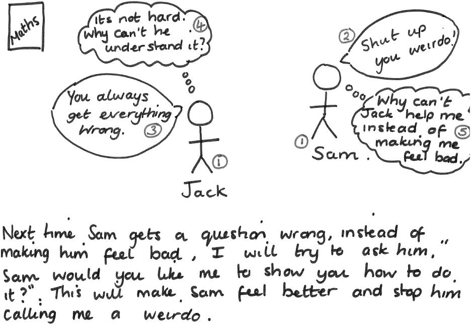 Example: Josh got frustrated by Melissa and shouted “you are stupid” at her. This upset Melissa and she asked to move away from him. Josh became upset by Melissa’s response as he was only “telling the truth”.