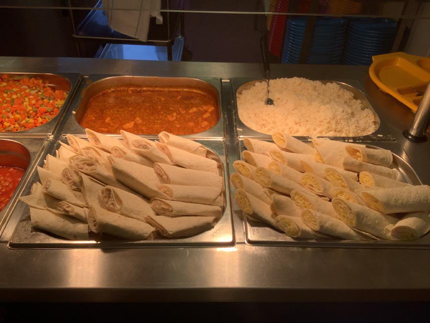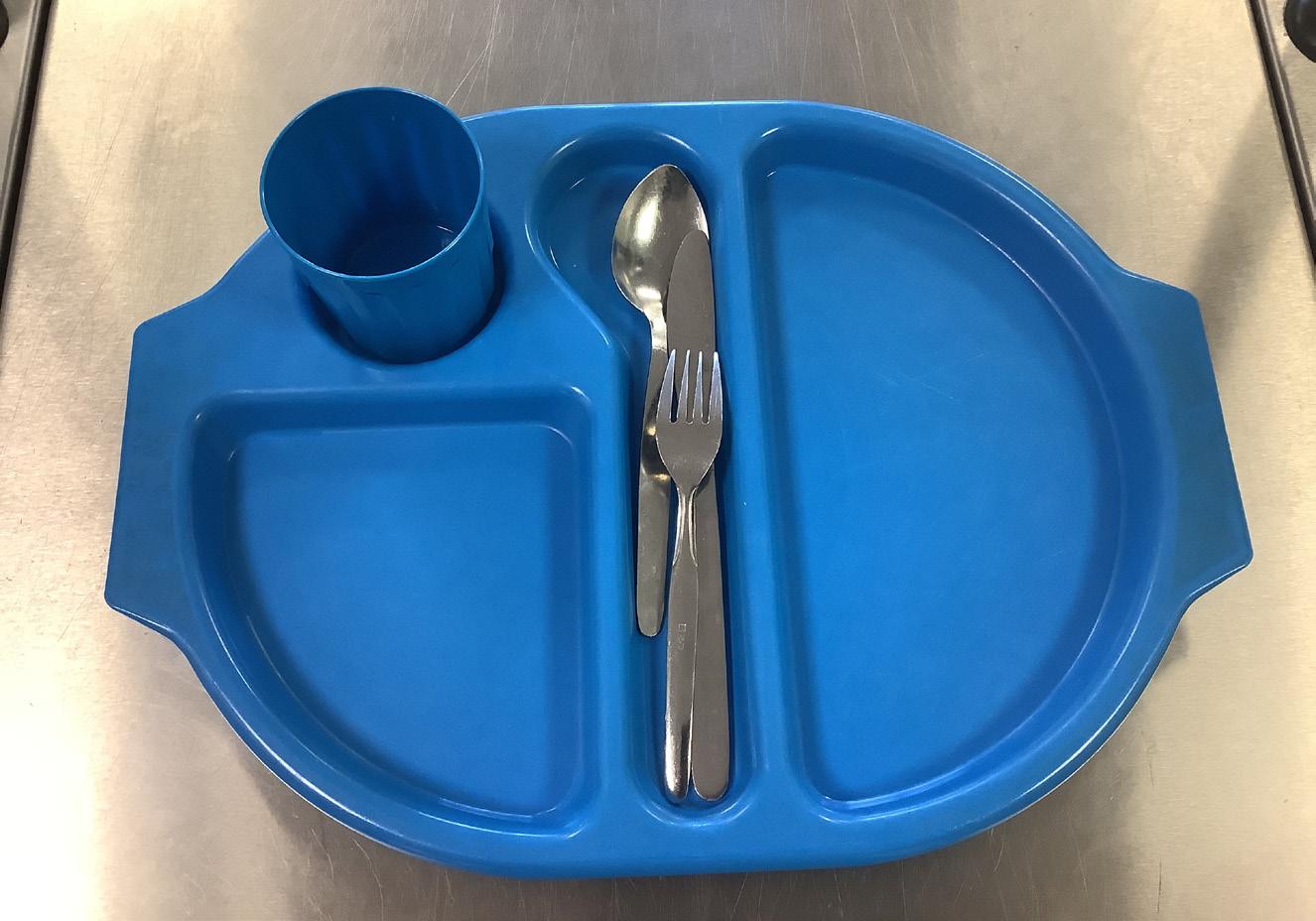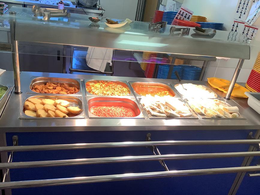 If you choose a hot dinner. You will carry your lunch on a tray like this. We have lots of tasty food for you to try.