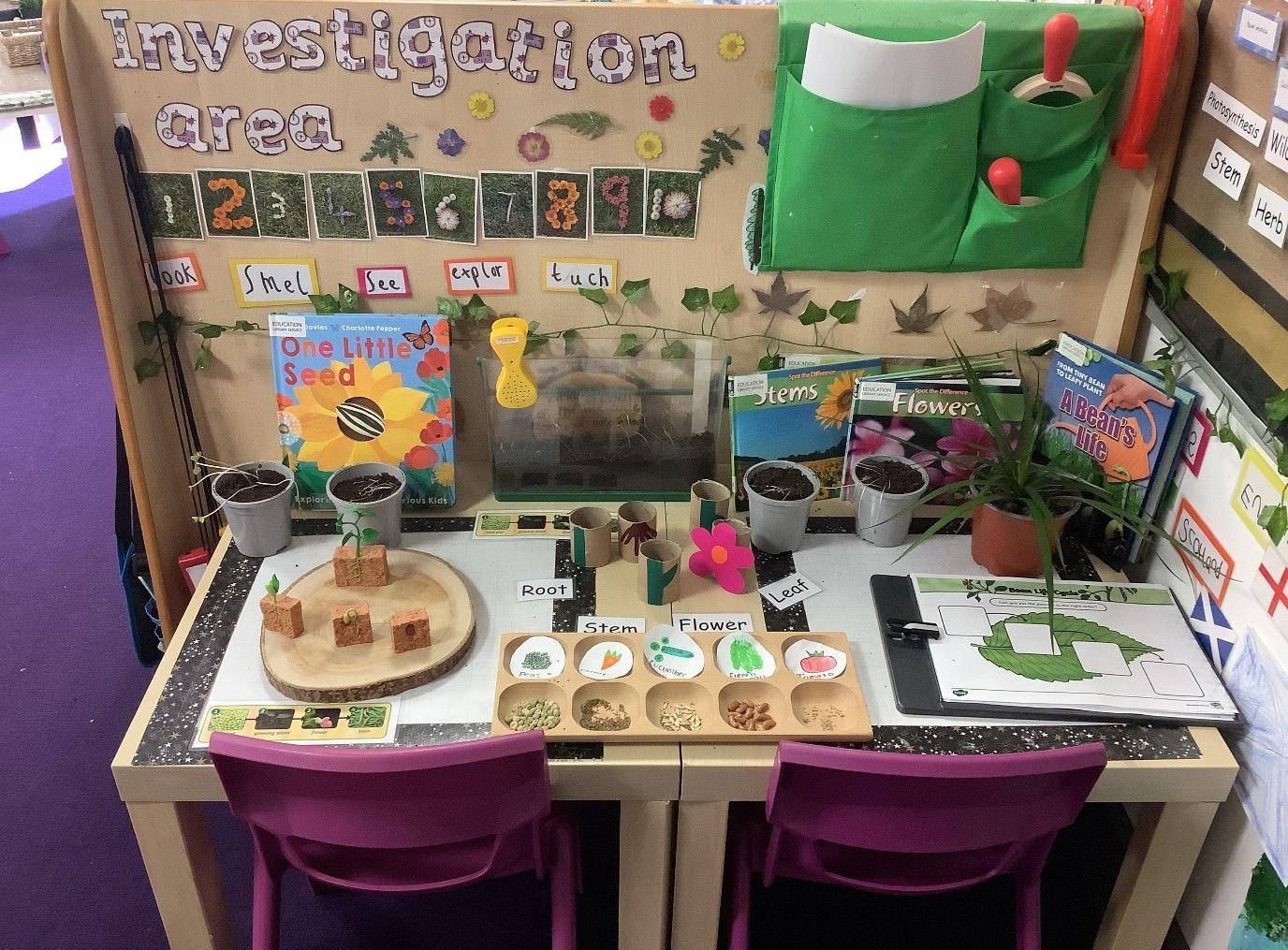 Here you can mark make, draw and practice writing your name and letters. There are lots of different pencils, pens, colours and paper to choose from.