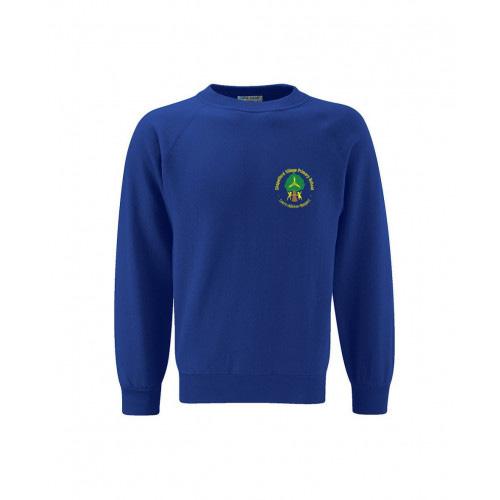Branded sweatshirt and cardigan available from school suppliers and second hand from school / foodbank. Royal blue sweatshirt or cardigan can be bought from regular retailers.