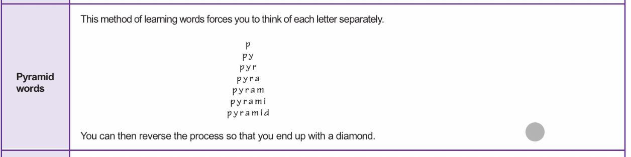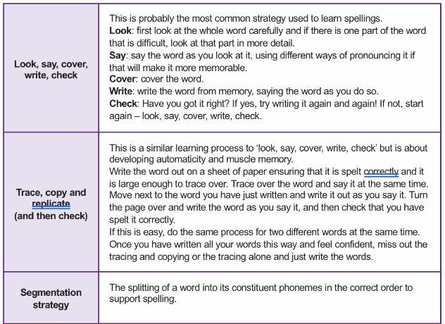 • Rote- visual memorisation- look/say/cover/write/check.