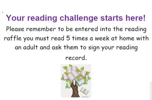 • 3 reads at home weekly and signed in the child’s reading record.