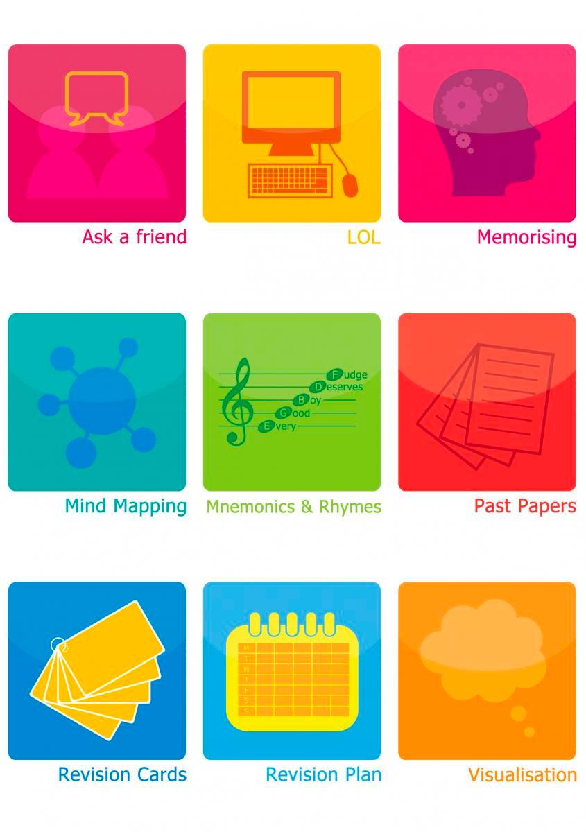 Mnemonics & Rhymes: Create these to break down long pieces of information into smaller memorable chunks; you can then recall these in an assessment.