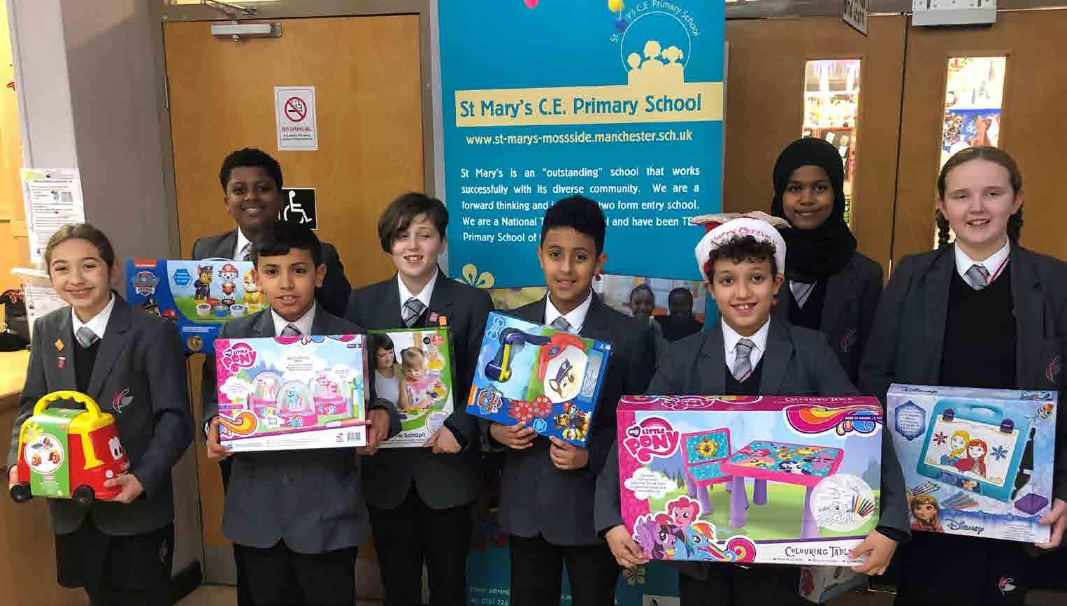 We visited Chorlton Park Primary School, St.Mary’s Primary School, Wilbraham Primary School, Oswald Road Primary School, Rolls Crescent Primary School and Piper Hill High School with an array of fun and exciting Christmas boxes for their young students, and we also donated a box of food and household items to ‘Barakah Food Aid’, who provide food parcels to people who are struggling in and around Manchester.