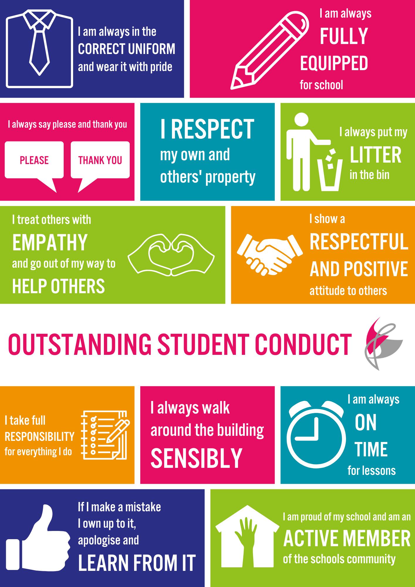 Do all my classwork and home learning activities as well as I can, ensuring to hand them in on time. Be courteous, polite, helpful and respectful to all members of our school community. Demonstrate the qualities of an outstanding student both in lessons, around the school building and on educational trips and visits.