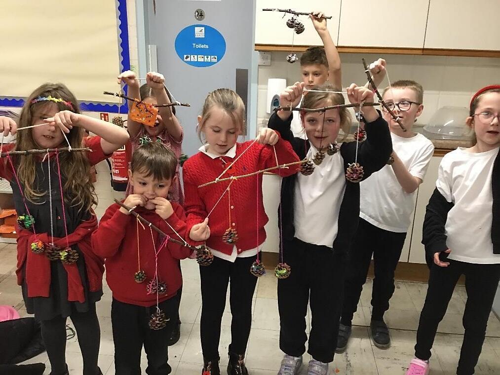 Thank You to Sue who has restarted Craft Club for the winter period. This year, joined by fellow volunteer, Teresa. The school really appreciates you both giving up your free time to share your crafty skills & expertise with our children, who – in their inaugural session this year – made pinecone mobiles! Wonderful.