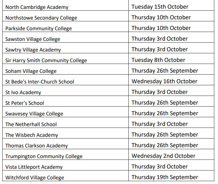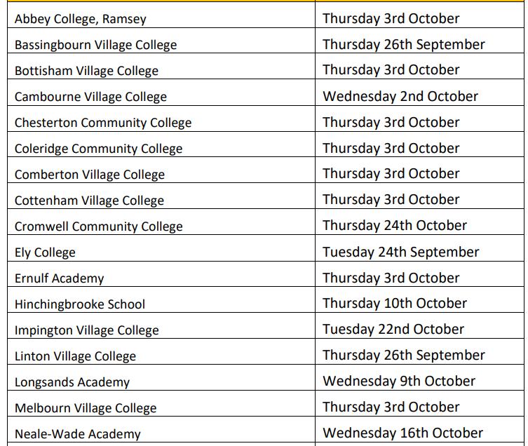 ✓ Some schools require you to complete a Supplementary Information Form (SIF) – in Cambridgeshire the only secondary school that currently has a SIF is St Bede’s Inter Church School – submit to the school by 31st October 2024