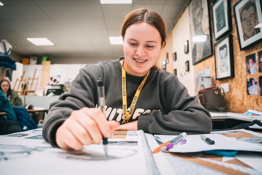 Students studying Art and Design will explore and develop their artistic skills in a variety of disciplines, including drawing and painting, textiles, graphic design and 3D design. Learners will also develop their ability to analyse artwork and think critically about the creative world and apply that knowledge to their projects. The course is designed with further education in mind, so that students who wish to pursue a career in Art and Design have the skills and knowledge required; many students do continue into highly successful careers in the widely increasing creative industries.