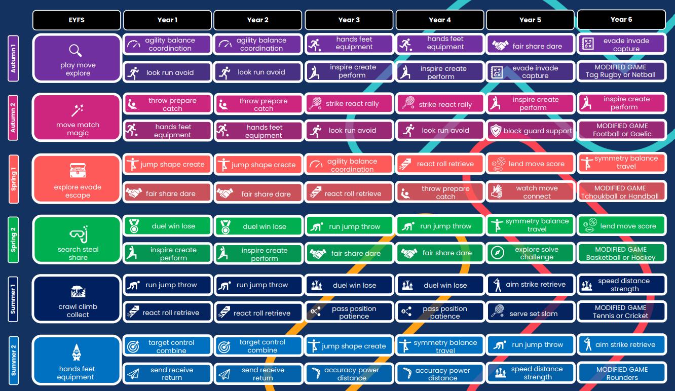 Beyond the PE is a progressive curriculum that builds on the three areas of Move, Solve and Connect as children move through the Key Stages: