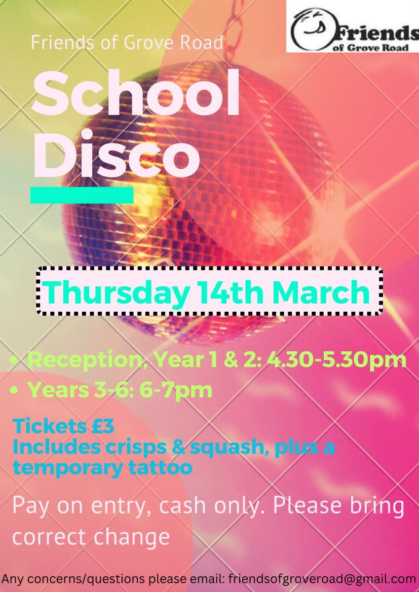 Thursday 14th March –6:00pm – 7:00pm Easter Disco – Key Stage 2