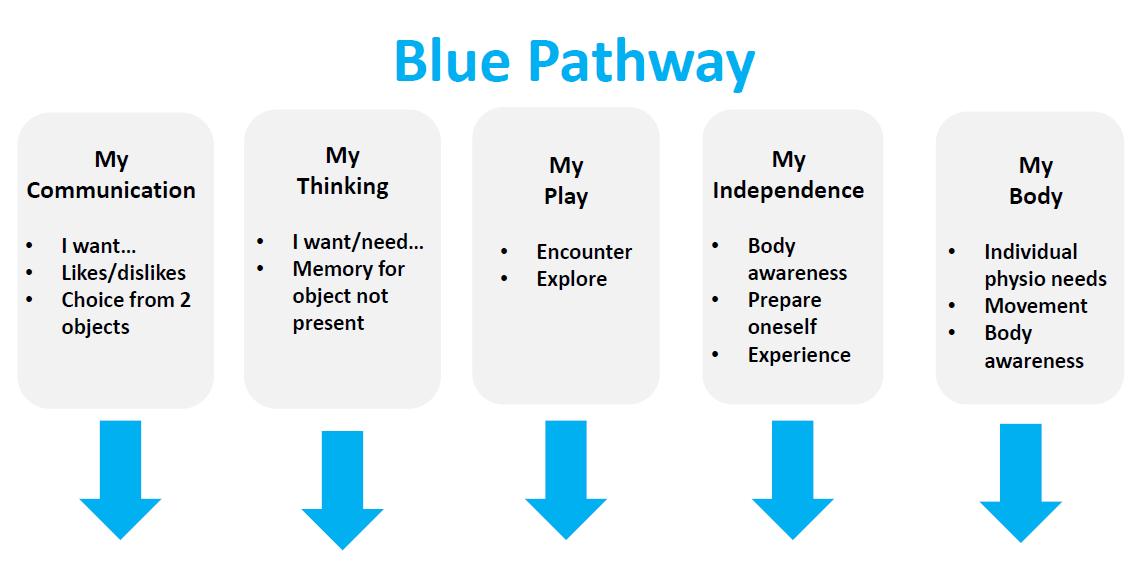 • Highly individualized and each student has their EHCP targets at the centre along with Blue pathway outcomes to inform next steps.