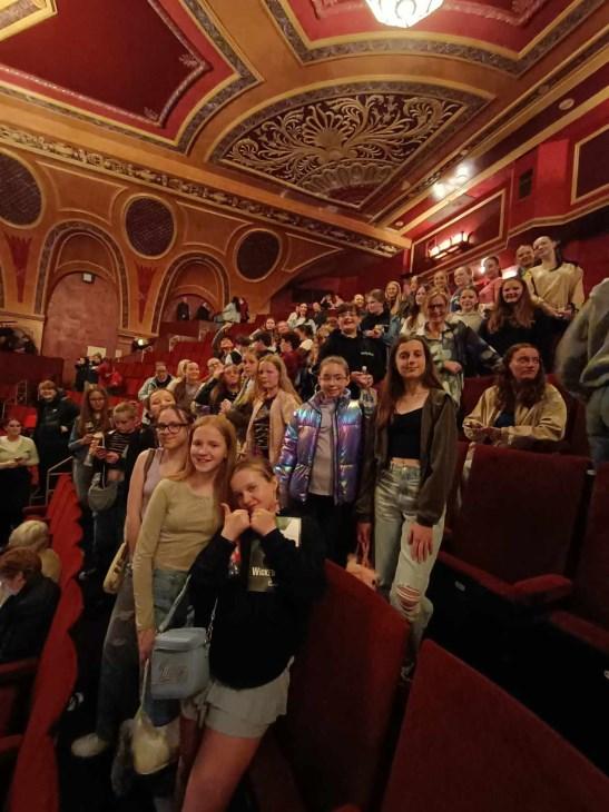 We all left on the coach at quarter past six for the half seven performance. Beforehand, Mrs Pellow made sure to remind us to take sweets in Tupperware or quiet wrappers so as to not disturb other theatregoers, and also of general theatre etiquette - don't go on your phone, don't speak, don't sing along, etc.