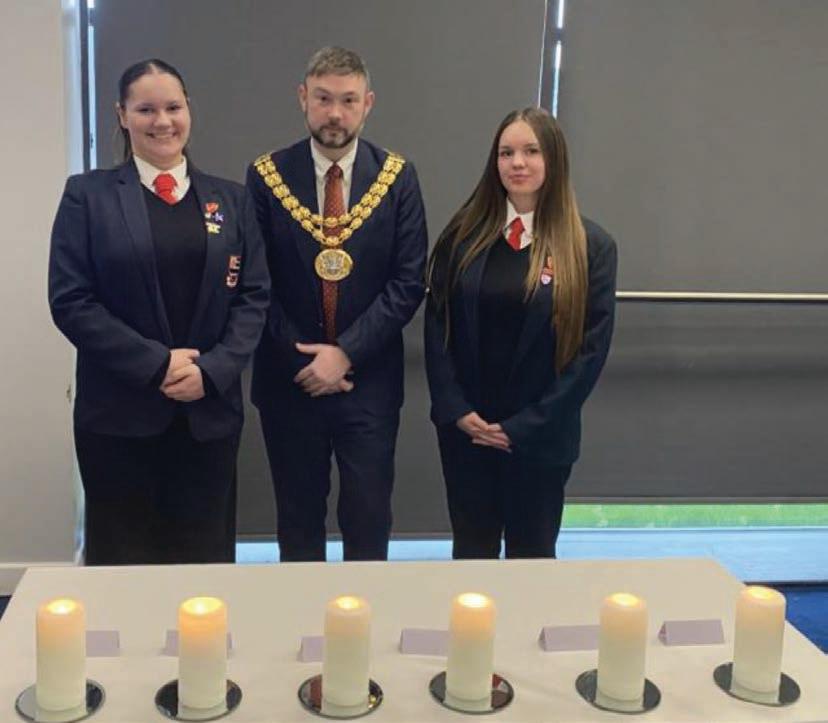 Head students Lacey Bramwell & Gabby Durber took part in the annual South Ribble Holocaust Memorial Service at the Civic Centre on Tuesday 27th January 2026. The service included readings, candle lighting and reflection around the Holocaust and other genocides that have taken place since. Other schools also took part along with civic leader and councillors.