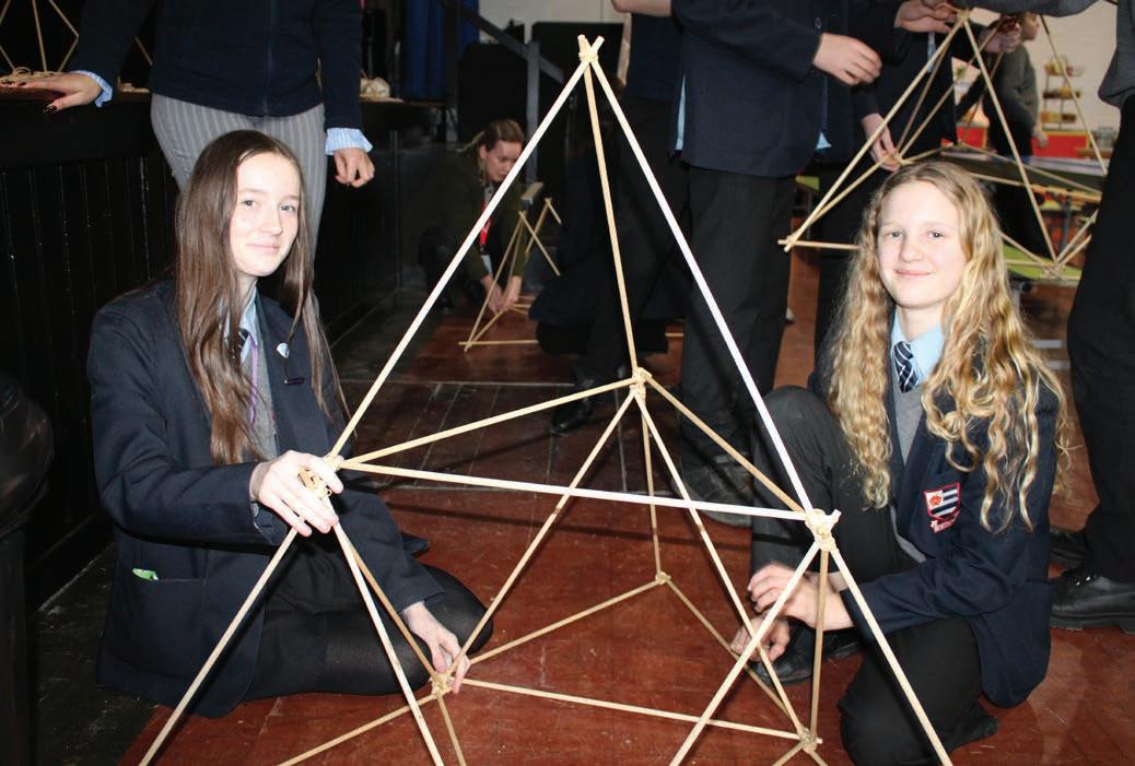 Students took part in a range of tasks, beginning with designing, budgeting, and building their own tetrahedron towers. Alongside the practical challenge, they explored ideas around material efficiency, waste reduction, and how using fewer or recycled materials can lower costs and reduce environmental impact. Once completed, each group’s tower was added to a larger collective structure, reinforcing teamwork and sustainable design principles.